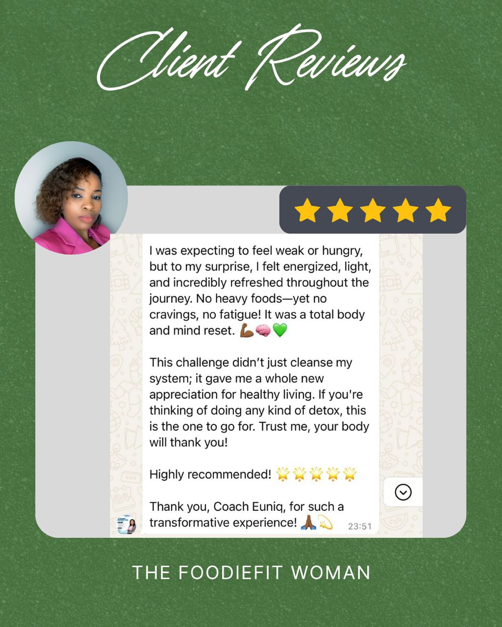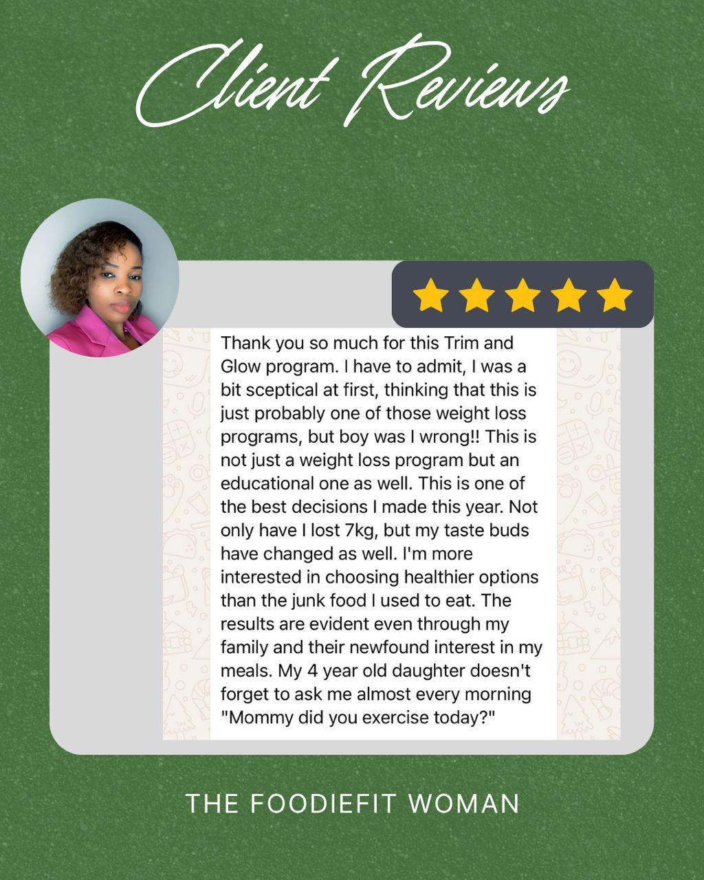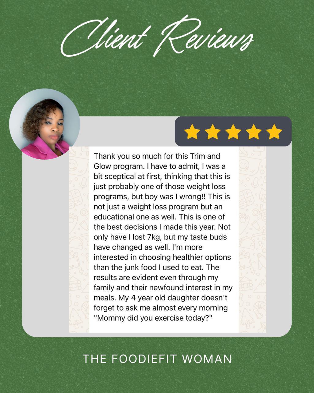 You can begin with our 3 days detox program, our 30 days reset program or our ultimate Trim and Glow Challenge, a guided 90-day program that includes meal plans, journaling, fitness guidance, and spiritual reflection.